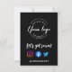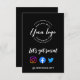 The front of the invitation features the phrase "Let's get social." in a modern hand-lettered style font, adding a touch of contemporary charm to the design. The black background creates a sleek and professional look, making it suitable for a wide range of businesses including salons, photo studios, restaurants, cafes, and more.