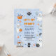 Blue Spooktacular Halloween 1st Boo-day Birthday Invitation. Too cute to spook! Invite your guests to celebrate your little 1st boo day thang with this adorable ghost themed Halloween birthday invitation. Surprise your guests with this cute invitation featuring cute ghosts, funny pumpkin, black cute cat, halloween candy, black bath, and a pastel Blue background,