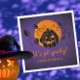 Modern Halloween design for spooktacular birthday party with scary pumpkin and orange moon purple background. A gender-neutral design, perfect for October celebrations! Template is easy to personalize.