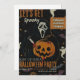 Join the cutest ghosts and pumpkin-headed friends for a whimsical Halloween costume party! With warm orange hues and playful artwork, this design captures the cozy yet spooky spirit of Halloween night.