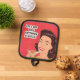 The design printed well on the oven mitt and pot holder, keeping its bold red color. It made a great gift.