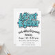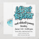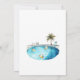 Graphic font in bondi blue highlights the front of this Let's Get Together party invitation that you can fully customize. On the reverse of this card is a serene pool illustration with palm trees.