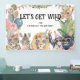 Celebrate in wild style with this playful Let’s Get Wild jungle birthday design featuring a cheerful lineup of watercolor party animals including a lion, tiger, zebra, chimpanzee, gorilla, and giraffe. Each animal is dressed for the celebration with festive sunglasses, party hats, balloons, and tropical greenery, creating a fun and colorful scene perfect for kids’ birthday parties.