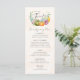 This Elegant Thanksgiving Dinner Menu features a beautiful watercolor design of pumpkins, flowers, and leaves in vibrant shades of orange, pink, yellow, blue, and green, setting the perfect mood for your holiday gathering.