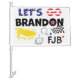 Popular political slogan, “Let's Go Brandon,” FJB with the American flag and a car racing flag, and a unique illustration of Donald Trump holding his fist protesting against Joe Biden.