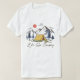A cool typography quote design for adventurers featuring a tent in the mountains, that reads: "Let's go camping".