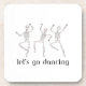 Three skeletons dancing with Lets Go Dancing on a coaster set.