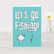 Color the text and fish on the front and customize the words inside. Cute fish with a smaller fish already turned into his lunch is eyeing worm like it's dessert! Does it make you want to get your fishing buddy and go fishing? BTW, this would be a great Father's Day card!