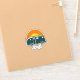 Camping lovers sticker. Cute for card making or scrapbooking! Retro colors orange, yellow and blue retro camping RV.