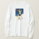 A design for skiers, using simple shapes and strong colors. This design has been adapted from a vintage 1920's travel poster showing a stylish woman skier with a bright orange flowing scarf blowing in the breeze against a bright blue sky. She's on long wooden skis, with free heel bindings; a single ski pole is all you need for this sort of kit! The words: Let's go ski! have been added in a vintage style font (these can be removed or changed if you wish). Works best on a white shirt, but you can try it on other colors (or styles) of shirt too.