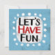 "Let's Have Fun" is a cute text design in light blue with black and red text, along with a white accent shape and white textured whimsical dots surrounding it.