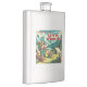 The product is a good size and came exactly as it was pictured. The lid is not attached to the flask, which could be dangerous on drunken nights... The print came out surprisingly well and looks very sharp. Would definitely recommend.
