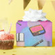 A fun paper for mom,sister of assorted makeup products on a colorful abstract background.