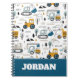 Check out this cute trendy design featuring fun moving vehicles.