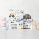 Check out this cute trendy design featuring fun moving vehicles.