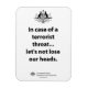 Let's be reasonable. In case of a terrorist threat what's the likelihood it'll really impact our lives other than the media scaring us which will cause politicians to take away our rights in the name of safety?