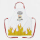 Illustration of a stove on fire with smoke cloud that says "Let's Order Pizza" with flames at bottom of apron.