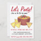 Invitations feature an original marker illustration of a nacho chips with queso cheese dip, and LET'S PARTY in a fun font. Ideal for celebrating the big football game.