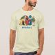 The "LET'S PARTY" slogan on this graphic tee can be customized with your own message. This fun t-shirt features illustrations of three cartoon birds: a goldfinch, a cardinal and a bluebird with party hats and a balloon.