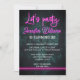 Fun cool bright neon pink invite for party people. Pink, white typography and moody green foliage leaves.