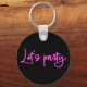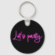 Lets party hot pink neon script minimalistic black keychain