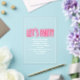 All purpose invitation featuring neon sign inspired "let's party" pink print and white text