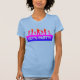 The material is a great quality that is hard to find with most tee shirts. Fabric was not see-through or thin at all, but was also very soft and comfortable. The shirt description states that it runs a little small, so I sized up one size for a perfect fit! I would definitely buy this type of tee shirt again because I love the fit and high quality fabric that I cannot find anywhere else. The printing was perfect and just as pictured. Loved the cute quote and really enjoy the tee in both the quality and design. I love quirky typography designs and funny quotes and I am extremely pleased with the overall quality and value I get at Zazzle!