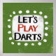 "Let's Play Darts" is a cute text design with a white accent shape surrounded by white textured whimsical dots.