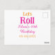 Let's roll happy 10th birthday add name retro pink postcard