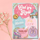 Get ready to roll and dance! Celebrate your daughter's special day with this groovy, retro-themed birthday party invitation. Perfect for a roller skating rink party or a fun dance and ballet celebration, this trendy pastel pink and light blue design features colorful retro roller skates, cute ballet pointe shoes, a vintage smiley face, and fun sparkly accents. The groovy "Let's Roll" typography sets the ultimate vibe for a kids or tween birthday bash. Easily personalize this customizable template with your child's name, age, date, and party location to get the good times rolling!