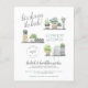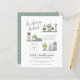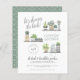 This boho style invitation features "let's shower the bride!" in script lettering, the bride's name in hand-written capitals, your date and time in a round stamp design, and the event details below. The illustrations are hand-painted in watercolor and show a variety of houseplants on three different shelves. There are succulents, cactus plants, hanging plants, and more! Cards reverse to a white boho leaf pattern against a green background. Perfect for any nature-loving bride-to-be! As part of the budget selection on Zazzle, this sheet isn't a standard invite size or paper quality. If you want this design on an invitation card you can find it in our store or use the Zazzle Make Machine to transfer it onto the product of your choice. Click on "Personalize this template" and change the text in the boxes to make your own! View the collection link on this page or visit our store for more designs!
