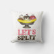 Decorative graphic print throw pillow features an original marker illustration of a banana ice cream sundae, with LET'S SPLIT in a fun font. Great for your favorite foodie!