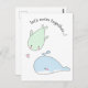 NewParkLane - Cute Postcard, with a two cute little baby whale cartoons, in soft blue and mint green, and quote 'let's swim together...!'.