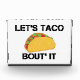 A funny way to say, let's talk about it. Featuring a yummy taco! So hey, LET'S TACO BOUT' IT instead. Sounds more fulfilling don't it?