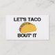 A funny way to say, let's talk about it. Featuring a yummy taco! So hey, LET'S TACO BOUT' IT instead. Sounds more fulfilling don't it?