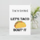 A funny way to say, let's talk about it. Featuring a yummy taco! So hey, LET'S TACO BOUT' IT instead. Sounds more fulfilling don't it?