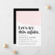 Need to postpone or change your wedding date? Inform wedding guests with our trendy & modern wedding postponement announcement. Chic design featuring a blush pink watercolor design at the top with "Let's try this again" in a stylish, bold black font. Personalize the announcement by adding your names, wedding details, and wedding website.