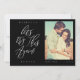 Sometimes things change. Update your wedding guests with your new wedding date with our modern save the date card. The design features a simple and modern layout with "Let's try this again" displayed in modern calligraphy. Simple black background with couple's name, and wedding date, and location, and photo.