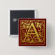Charming decorative letter A initial monogram, calligraphy style typography, first letter in red and faux gold (shades of yellow with highlights and shadows to simulate metallic gold leaf gilding texture).