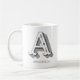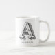 Customizable white coffee mug featuring the letter A in unique grey colored typography. Add your name using the personalization feature.