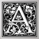 This initial A is part of a complete series of upper case William Morris inspired typography initials. The black and white lettering is highly decorative, styled after the fancy typography of the middle ages. Cute and trendy, this is a vintage chic monogram A - letter A- swirly A . Customize this vintage monogram by changing the background color; just choose "edit design", and edit background color.