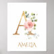 Letter A Monogram Pink Peach rose Nursery Poster