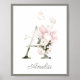 Elegant Letter A monogram nursery poster featuring a watercolor illustration of pink peony, roses and green foliage.
