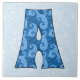 Sweet blue Paisley print monogrammed tile with the letter A.
