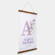 Initial & Name with Floral Design on a Wall-Hanging Tapestry. Design features the recipient's Monogram & Name with Flowers either side in a water color pastel style. Initial is the letter A. Example shows Angela.