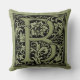 Charming letter B initial monogram calligraphy style typography first letter in black over vintage avocado green book lining with off white Ginkgo biloba leaves.