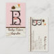 Letter B Monogram Custom Business Cards for your cupcake or other bakery business. Sweet and Contemporary! This business card design features three hand painted cupcakes in chocolate brown and soft pink and cream. The Monogram Letter is in “chocolate” and will appeal sweet lovers everywhere! The background is a soft shell pink with latte colored swirls over a cream crackle finish and a chocolate brown stripe. This design is perfect for your wedding shower, bridal shower or for businesses such as wedding coordinators, event planners, bakeries, bake shops, custom wedding cake designers, specialty cupcake services and more. Every letter of the alphabet is available, if you don't see what you want just email us!