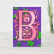 The letter B on an elegantly ornamental card. Pink initial on a violet background, with green foliage detail. Available on greeting cards, notecards or postcards. Envelopes included with greeting or notecards (no envelopes with postcards), blank inside. Buy in bulk and save.