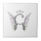 Letter C Initial Monogram with Angel Wings & Halo Ceramic Tile