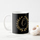 "Letter C Monogram Black n Gold Script Name Coffee Mug." Elegant and sophisticated gold leaf wreath with your monogram letterC in gold glitter. Personalize you name in script handwriting. Art by Internationally licensed artist, Audrey Jeanne Roberts, copyright.